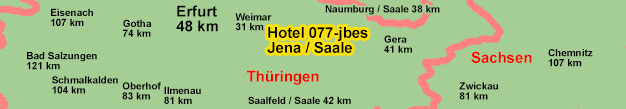 Saalfeld / Saale (ca. 42 km), Erfurt (ca. 48 km), Weißenfels (ca. 62 km), Gotha (ca. 74 km), Ilmenau (ca. 81 km), Zwickau (ca. 81 km), Oberhof (ca. 83 km), Merseburg (ca. 86 km), Hof